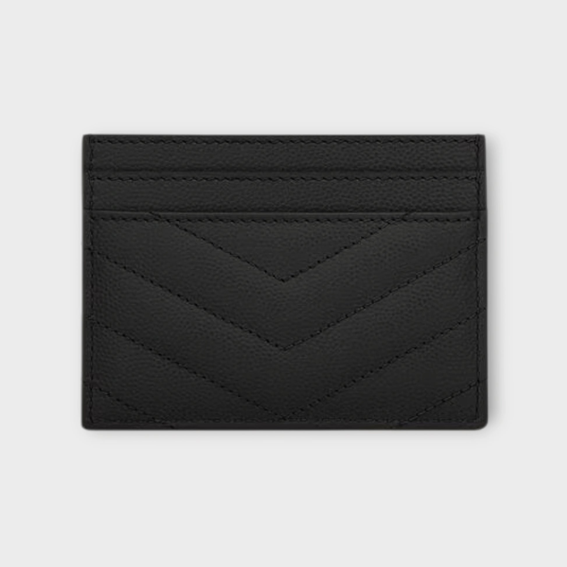 The Saint Laurent Cassandre Quilted Leather Card Holder is crafted from metal-free tanned grain de poudre leather and finished with quilted overstitching for a refined, textured look. The iconic gold-toned CASSANDRE emblem highlights the front, bringing a timeless signature touch to this sleek accessory.